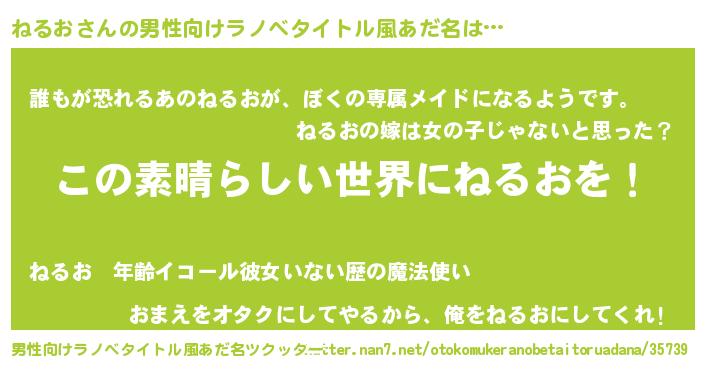 | 意味不明あだ名 | 『住所不定無職ねるお(40歳)』 |