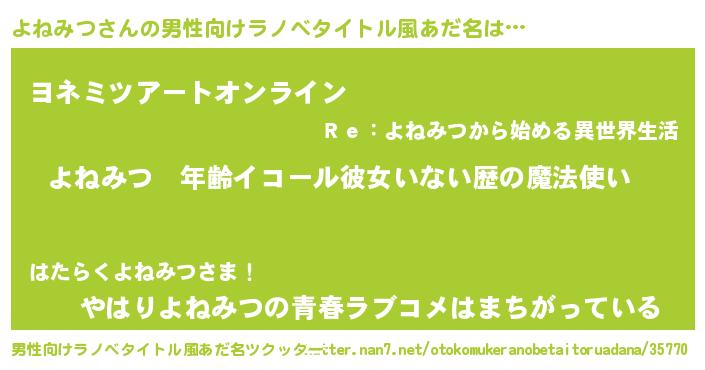 | 女子向けラノベタイトル風あだ名 | 『よねみつの玉の輿計画!』 |