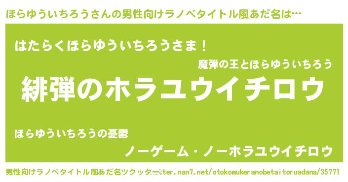 | 胡散臭い通販商品みたいなあだ名 | 『100人中100人が認めたマグネット磁石…その名も「ほらゆういちろう」』 |