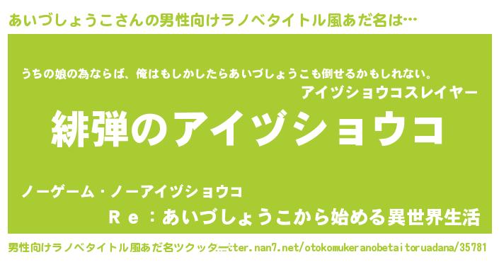 あいづしょうこさんの男性向けラノベタイトル風あだ名をツクッター!