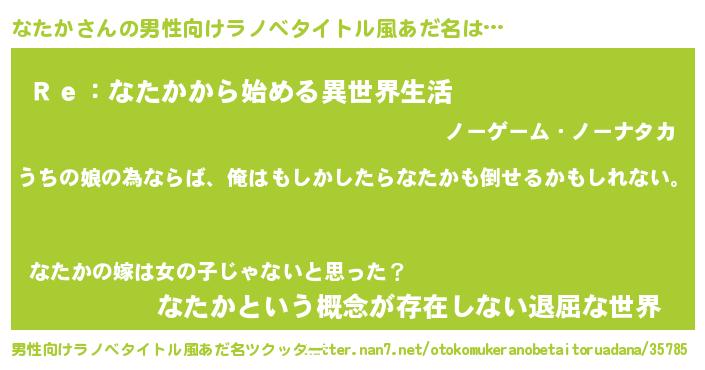 | 意味不明あだ名 | 『なたかフォーエバー』『自称なたか』 |