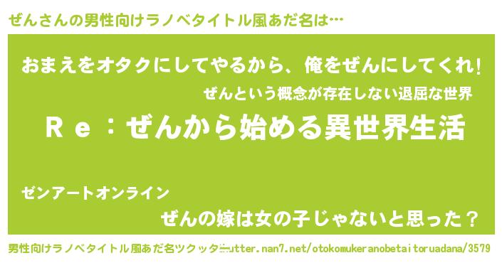 | ヒーロー風カッコイイあだ名 | 『最強戦士ゼン』『天空の使者ぜん』 |