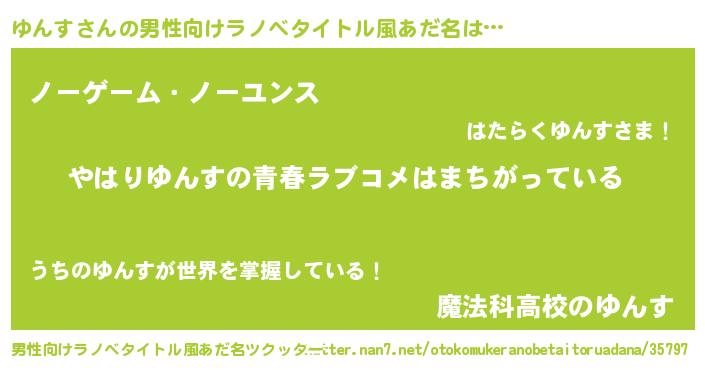 | 女子向けラノベタイトル風あだ名 | 『ゆんす伯爵の花嫁』『死神ゆんすの再婚』 |