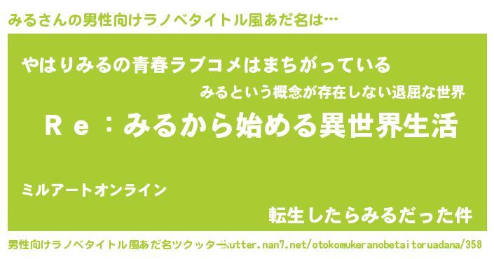 | 意味不明あだ名 | 『自称みる』『みるフォーエバー』 |