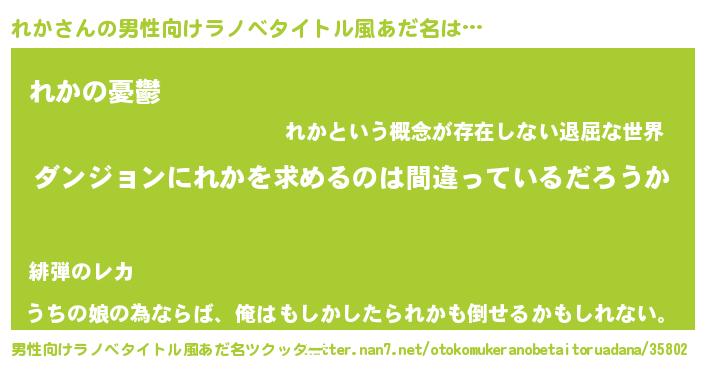 | 胡散臭い通販商品みたいなあだ名 | 『信頼と実績のペンダント…その名も「れか」』 |