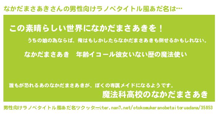 | 意味不明あだ名 | 『ヨモギ科なかだまさあき属』 |