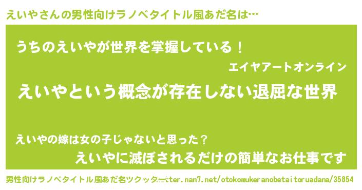 | ヘコむあだ名 | 『えいや(笑)』『えいにゅー』 |