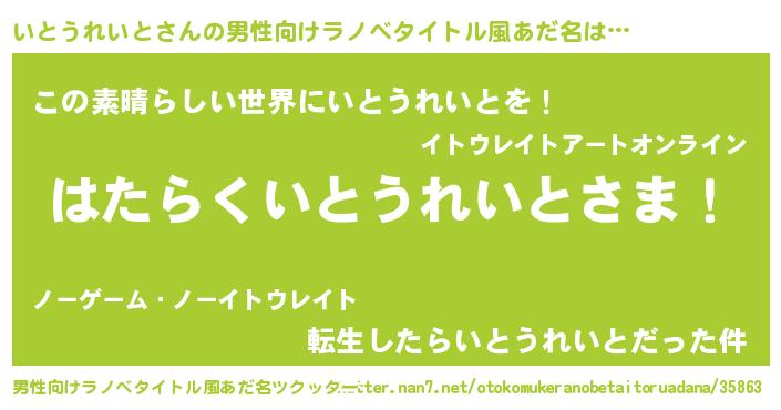 | ヒーロー風カッコイイあだ名 | 『仮面イトダー』『スーパーイトウレイト』 |