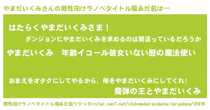 | 胡散臭い通販商品みたいなあだ名 | 『あなたにだけ特別に提供する限定10本のレアな日本酒…その名も「やまだいくみ」』 |