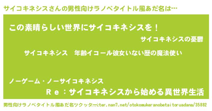 | 女子向けラノベタイトル風あだ名 | 『サイコキネシスの玉の輿計画!』 |