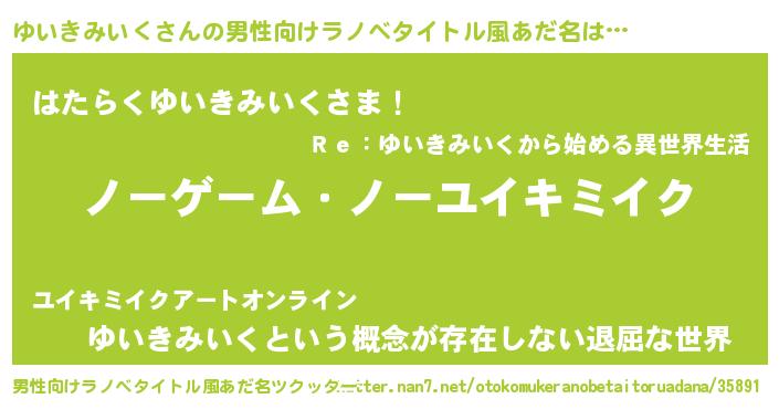 | 女子向けラノベタイトル風あだ名 | 『ゆいきみいく恋絵巻』 |