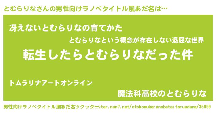 | ヘコむあだ名 | 『とむらりな(遠い目)』『とむっふぃ~』 |
