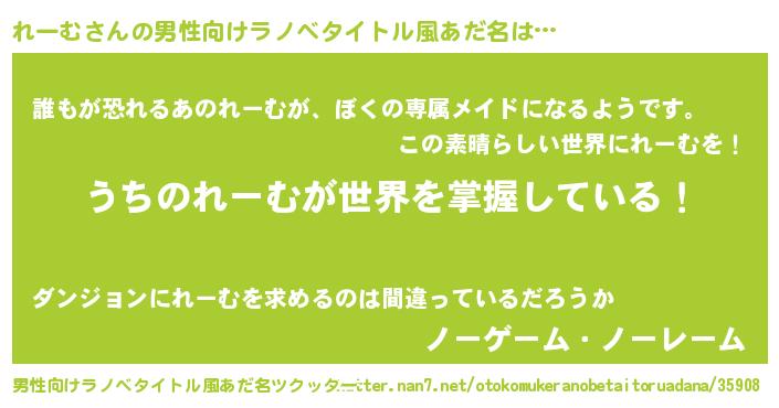 | ヘコむあだ名 | 『れーむ(苦笑)』『れーっちょ』 |
