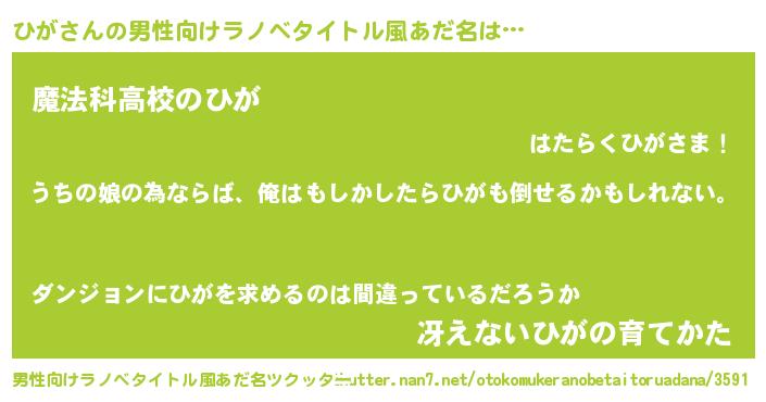 | 胡散臭い通販商品みたいなあだ名 | 『運命の人と巡り会える高級そうな壺…その名も「ひが」』 |