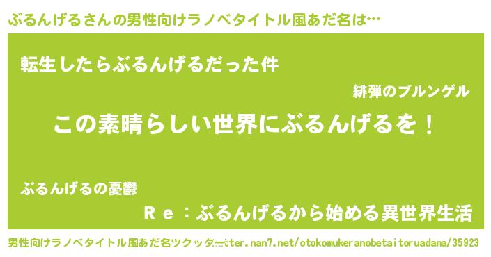 | 女子向けラノベタイトル風あだ名 | 『乙女ゲームの破滅フラグしかない悪役ぶるんげるに転生してしまった…』 |