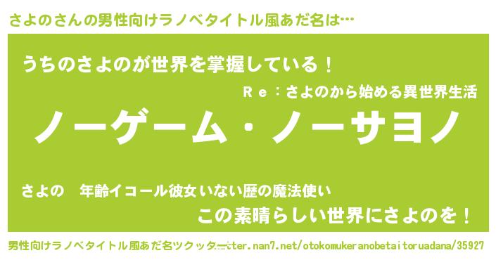 | 女子向けラノベタイトル風あだ名 | 『死神さよのの再婚』『闇のさよの』 |