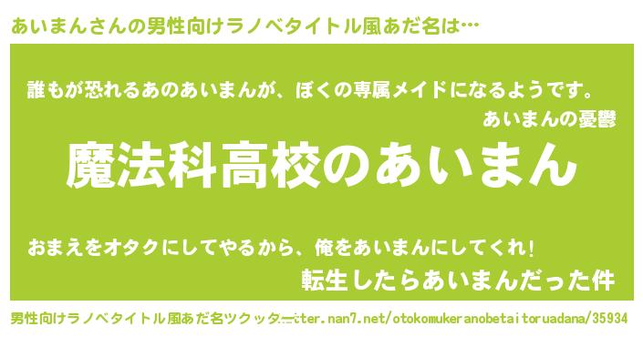 | 女子向けラノベタイトル風あだ名 | 『あいまんアンティーク』 |