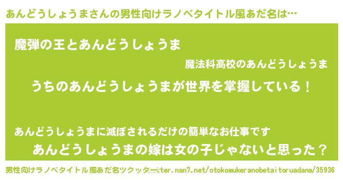 | 意味不明あだ名 | 『住所不定無職あんどうしょうま(79歳)』 |