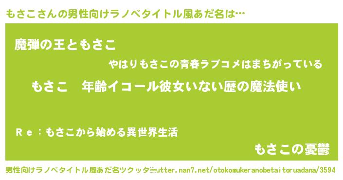| ヘコむあだ名 | 『もさにー』『豆乳』『もさぷりん』 |