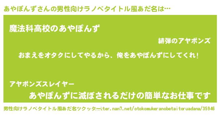 | 女子向けラノベタイトル風あだ名 | 『あやぽんず夫妻のなれそめ』 |