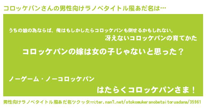 | ヒーロー風カッコイイあだ名 | 『幻影騎士コロ』『ネオコロッケパン』 |
