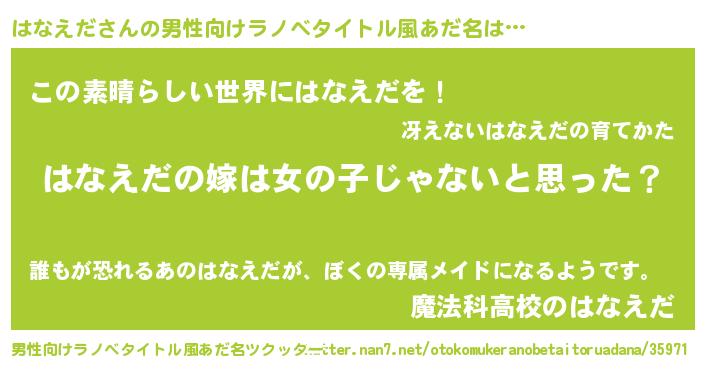 | 女子向けラノベタイトル風あだ名 | 『はなえだ様がみてる』 |