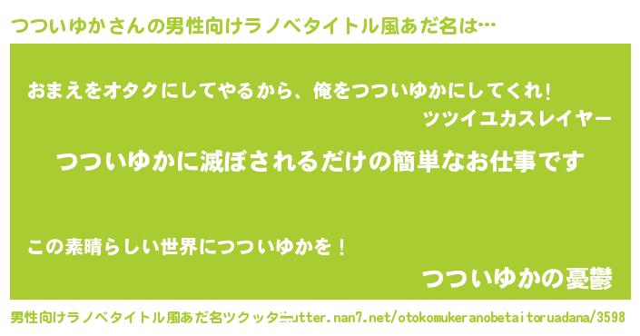 | 女子向けラノベタイトル風あだ名 | 『横柄つついゆかと宰相陛下』 |