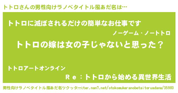 | 恥ずかしいあだ名 | 『トトリンリン』『トトロデラックス』 |
