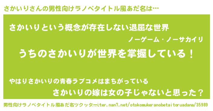 | ヒーロー風カッコイイあだ名 | 『ネオサカイリ』『暗黒騎士サカ』 |