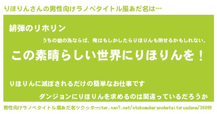 | 女子向けラノベタイトル風あだ名 | 『悪役りほりんに転生したようですが、知った事ではありません』 |