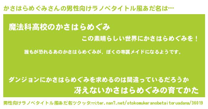| 意味不明あだ名 | 『永久保存かさはらめぐみ』 |