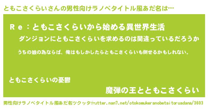| 女子向けラノベタイトル風あだ名 | 『ともこさくらいの婚約者』 |