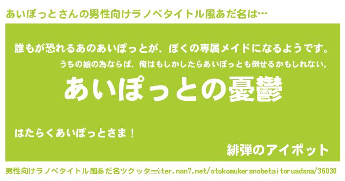| 女子向けラノベタイトル風あだ名 | 『あいぽっと姫と円卓の騎士』 |