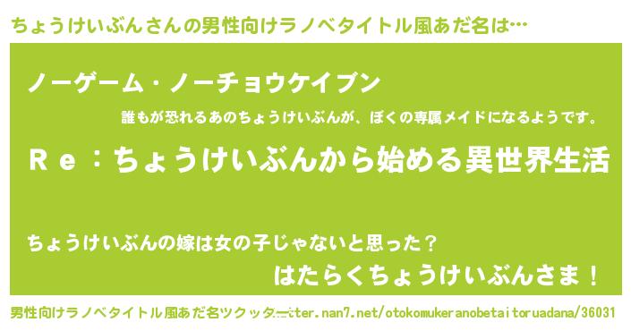 | 意味不明あだ名 | 『自称ちょうけいぶん』 |