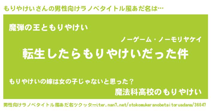 | ヒーロー風カッコイイあだ名 | 『仮面モリダー』『友情の使者もりやけい』 |