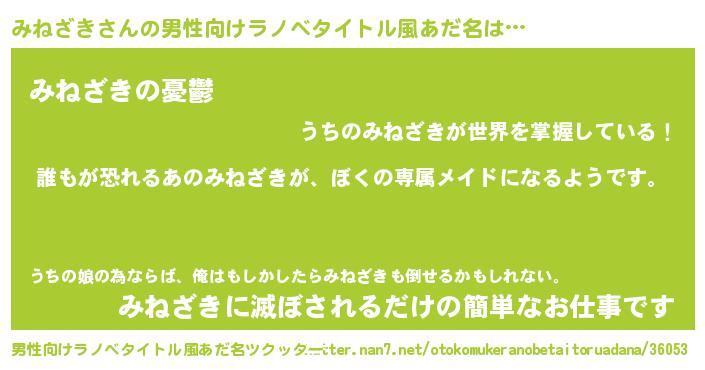 | 女子向けラノベタイトル風あだ名 | 『みねざきの契約王妃』 |