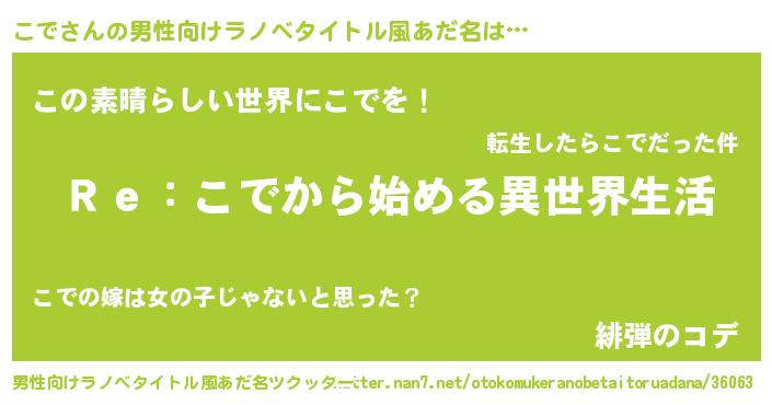 | 女子向けラノベタイトル風あだ名 | 『闇のこで』『シンデレラこで家の靴箱館』 |