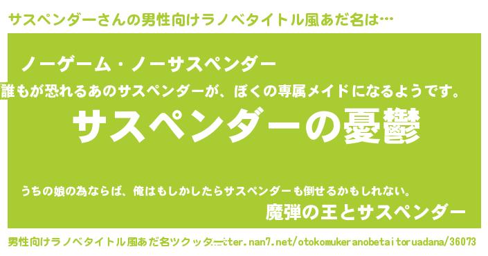 | 女子向けラノベタイトル風あだ名 | 『(仮)サスペンダーのやんごとなき事情』 |