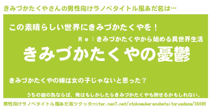 | 女子向けラノベタイトル風あだ名 | 『(仮)きみづかたくやのやんごとなき事情』 |