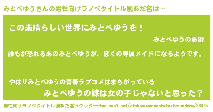 | 意味不明あだ名 | 『永久保存みとべゆう』 |