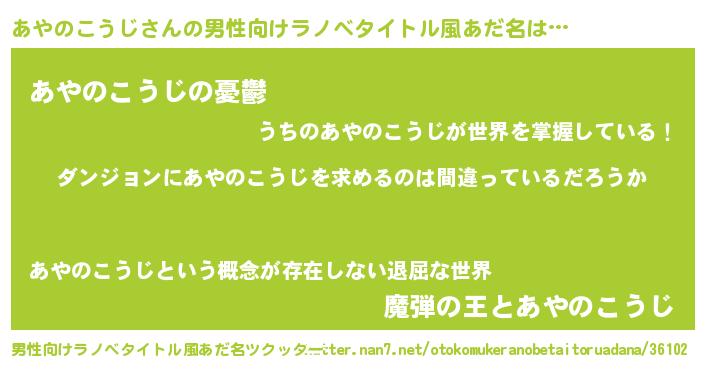 | ヒーロー風カッコイイあだ名 | 『暗黒騎士アヤ』『スーパーアヤノコウジ』 |