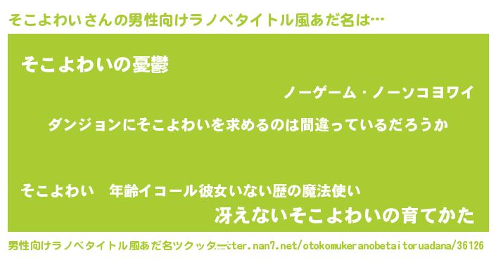 | 胡散臭い通販商品みたいなあだ名 | 『信頼と実績のペンダント…その名も「そこよわい」』 |