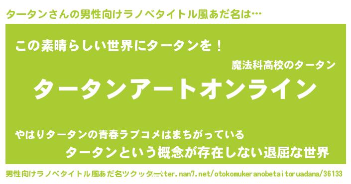 | 胡散臭い通販商品みたいなあだ名 | 『億万長者になれるブレスレット…その名も「タータン」』 |