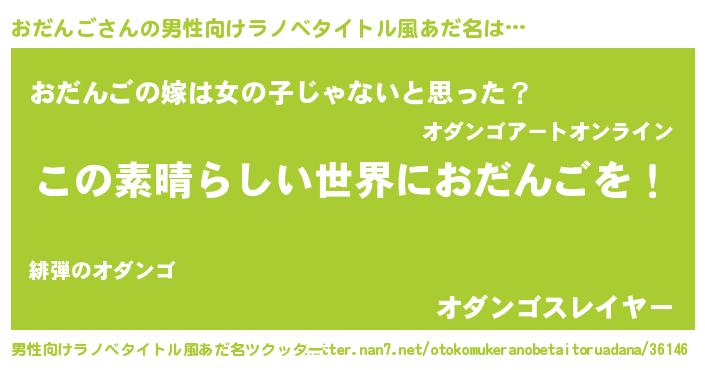 | 意味不明あだ名 | 『住所不定無職おだんご(53歳)』 |