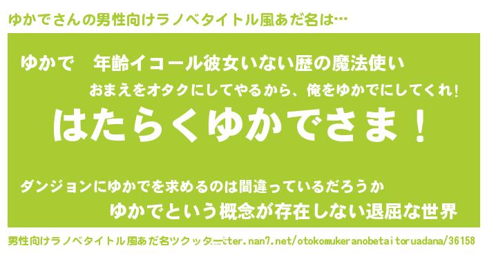 | 胡散臭い通販商品みたいなあだ名 | 『絶対に幸福をもたらす水素水…その名も「ゆかで」』 |