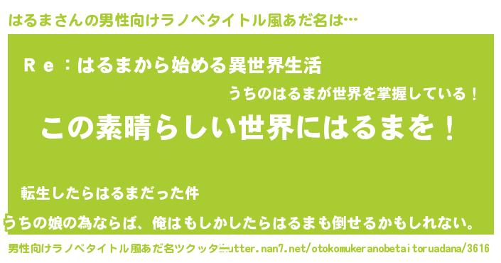 | 意味不明あだ名 | 『住所不定無職はるま(7歳)』『自称はるま』 |