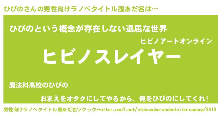 | 胡散臭い通販商品みたいなあだ名 | 『絶対に幸福をもたらす水素水…その名も「ひびの」』 |