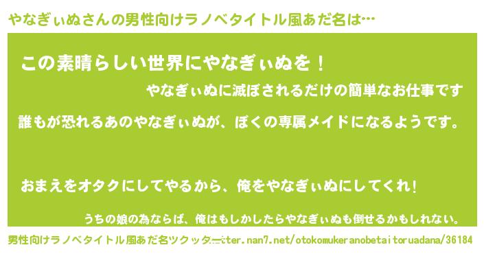 | 意味不明あだ名 | 『永久保存やなぎぃぬ』 |