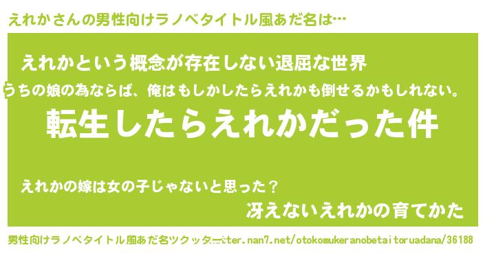 | 胡散臭い通販商品みたいなあだ名 | 『来世でも幸せになれる水素水…その名も「えれか」』 |