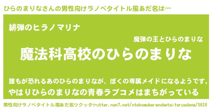 | 女子向けラノベタイトル風あだ名 | 『ひらのまりなアンティーク』 |